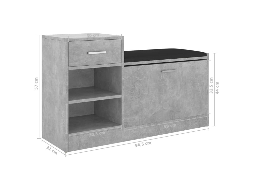 Lavice s botníkem betonově šedá 94,5 x 31 x 57 cm kompozit 326745