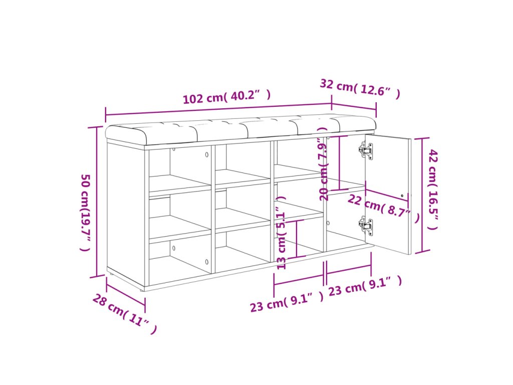 Lavice s botníkem šedá sonoma 102 x 32 x 50 cm kompozitní dřevo 835094