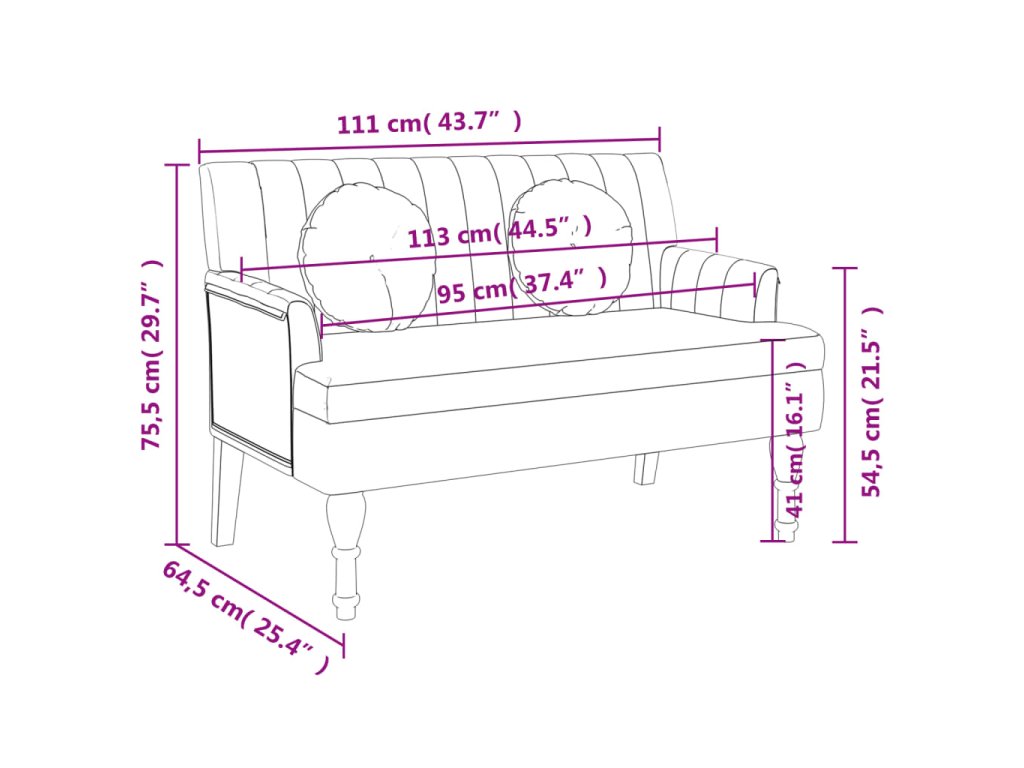 Lavice s polštáři tmavě hnědá 113 x 64,5 x 75,5 cm textil 372133