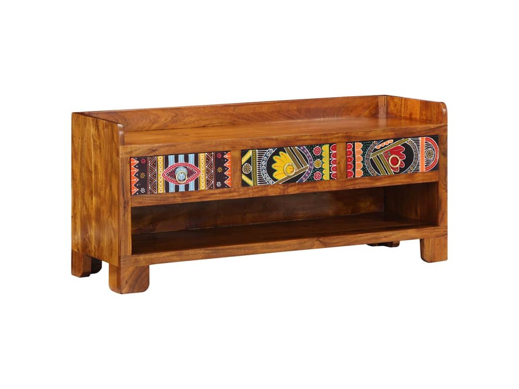 Tahle lavice na boty je praktickým a pěkným řešením pro uspořádání obuvi, ideálně se hodí do každého obýváku. Je vyrobená z masivního akáciového dřeva, má medově hnědý povrch, což z ní dělá nejen krásný kousek, ale také užitečný. Tóny tohoto nábytku zapadnou do jakéhokoli interiéru a poskytují dostatek místa na boty a další doplňky, takže váš pokoj zůstane uklizený a útulný.