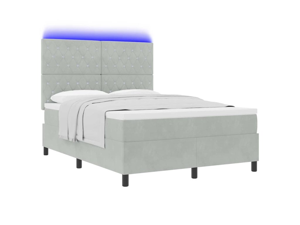 LED box pružinová postel s čelo Světle šedá 140 x 200 cm textil 3343250