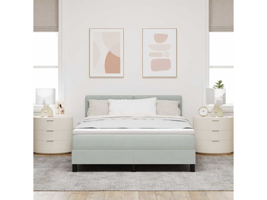 LED box pružinová postel s LED Světle šedá 160 x 200 cm samet 3342596