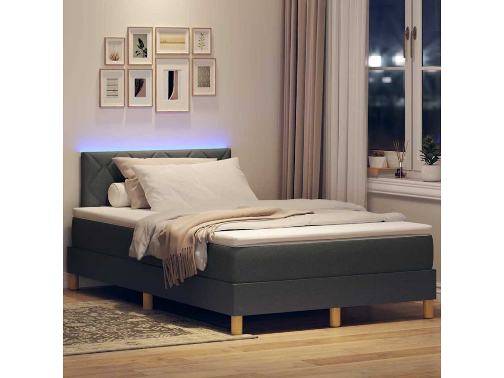LED box pružinová postel s LED Tmavě šedá 120 x 190 cm textil 3342500