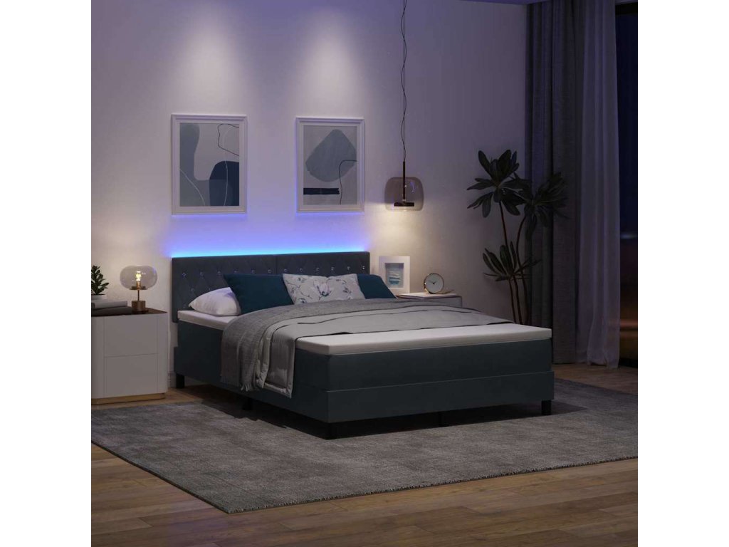 LED box pružinová postel s LED Tmavě šedá 160 x 200 cm samet 3342597