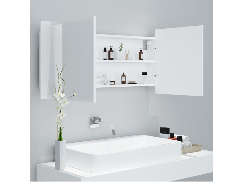 Tato koupelnová skříňka je vybavená RGB světly, takže je možné měnit barvu LED světel. Dvě police uvnitř skříňky nabízejí spoustu úložného prostoru v koupelně. Pohodlně se do nich vejdou vaše základní hygienické a toaletní potřeby jako mýdla, šampony, zubní pasty atd. Navíc se snadno čistí vlhkým hadříkem.