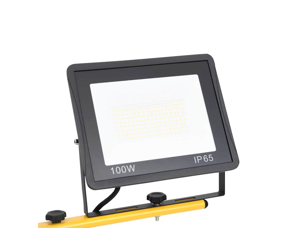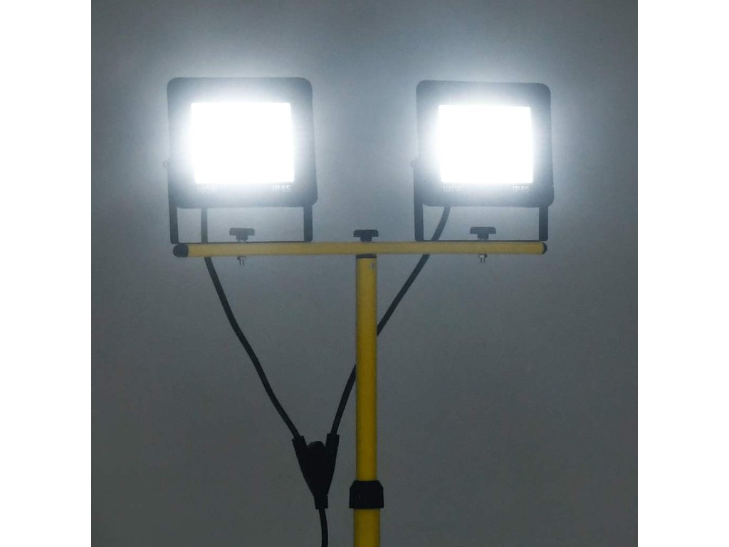 Pracovní světlo má hliníkové pouzdro a skleněný kryt, odvádí tedy dobře teplo a má nízkou hmotnost. Se světelným tokem 14 000 lm a úhlem vyzařování 120° zajišťuje dokonalé osvětlení. Reflektor navíc vyzařuje světlo o barevné teplotě 6 000 K, která zajišťuje optimální světelné podmínky v okolí vašeho domova. Pracovní světlo je podepřeno ocelovou trojnožkou, což mu dodává na robustnosti a stabilitě. Výšku si můžete nastavit podle vlastních preferencí. Vzhledem k pevně připojenému 3m napájecímu kabelu se zástrčkou je ideální lampu postavit do místnosti.