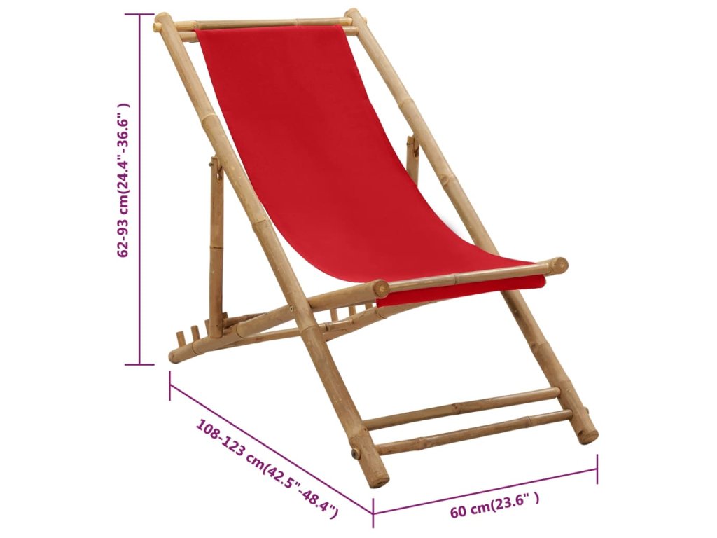 Toto lehátko je vyrobené z bambusu, pro který je typická vynikající odolnost vůči povětrnostním vlivům a dlouhá životnost. Křeslo si můžete nastavit do jedné ze 4 poloh tak, abyste si našli tu nejpohodlnější pozici pro sezení nebo ležení. Plátno, ze kterého je plážové křeslo vyrobené, je velmi pohodlné. Židle má skládací design, takže ji můžete snadno složit a uložit, když ji právě nepoužíváte.