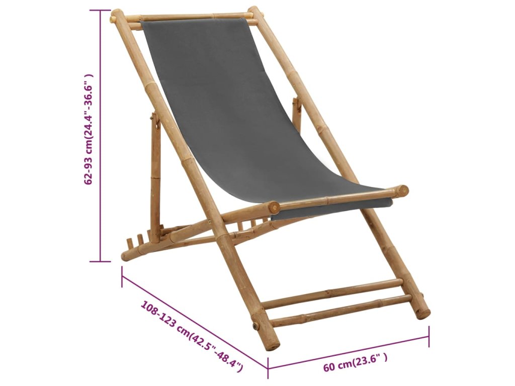 Toto lehátko je vyrobené z bambusu, pro který je typická vynikající odolnost vůči povětrnostním vlivům a dlouhá životnost. Křeslo si můžete nastavit do jedné ze 4 poloh tak, abyste si našli tu nejpohodlnější pozici pro sezení nebo ležení. Plátno, ze kterého je plážové křeslo vyrobené, je velmi pohodlné. Židle má skládací design, takže ji můžete snadno složit a uložit, když ji právě nepoužíváte.