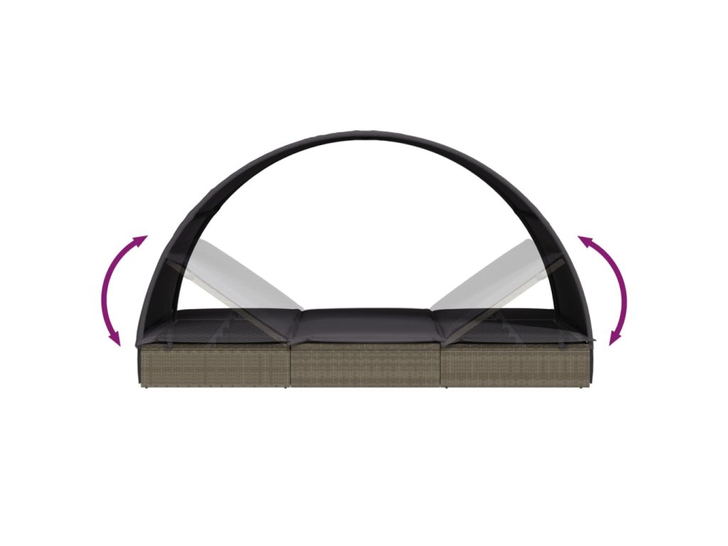 Lehátko s kulatou střechou pro 2 šedé 211x112x140 cm polyratan 319655