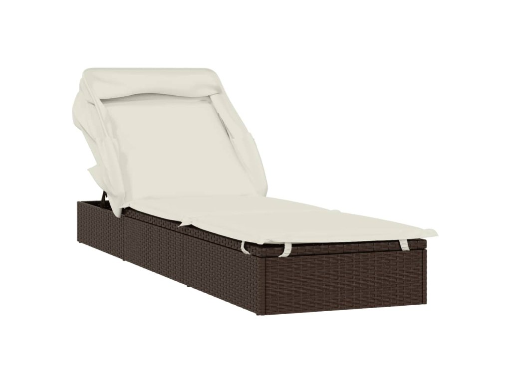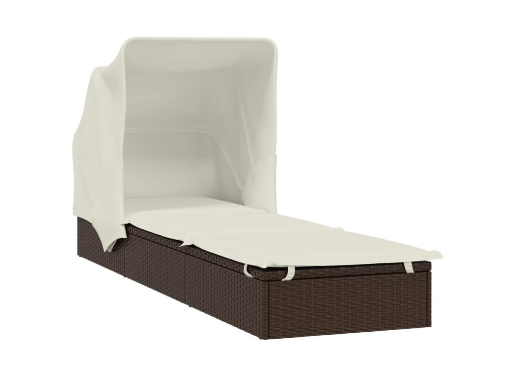 Lehátko se skládací střechou hnědé 213 x 63 x 97 cm polyratan 319637