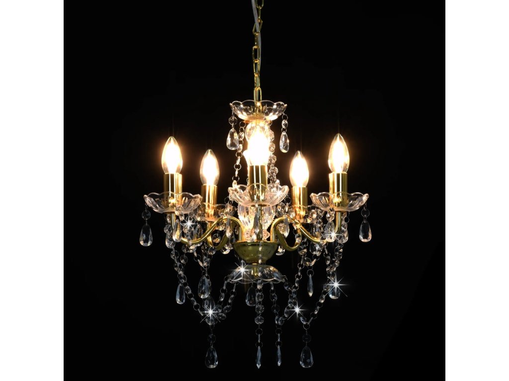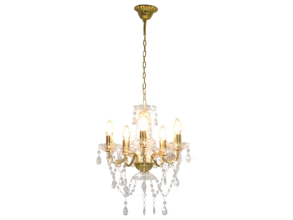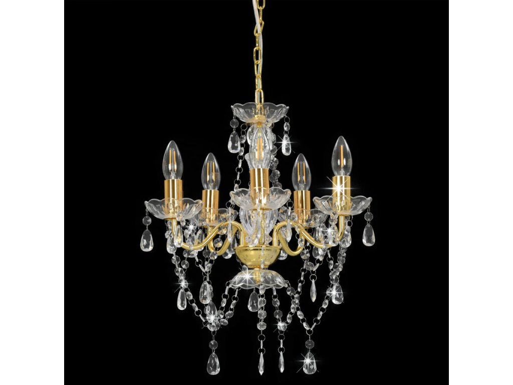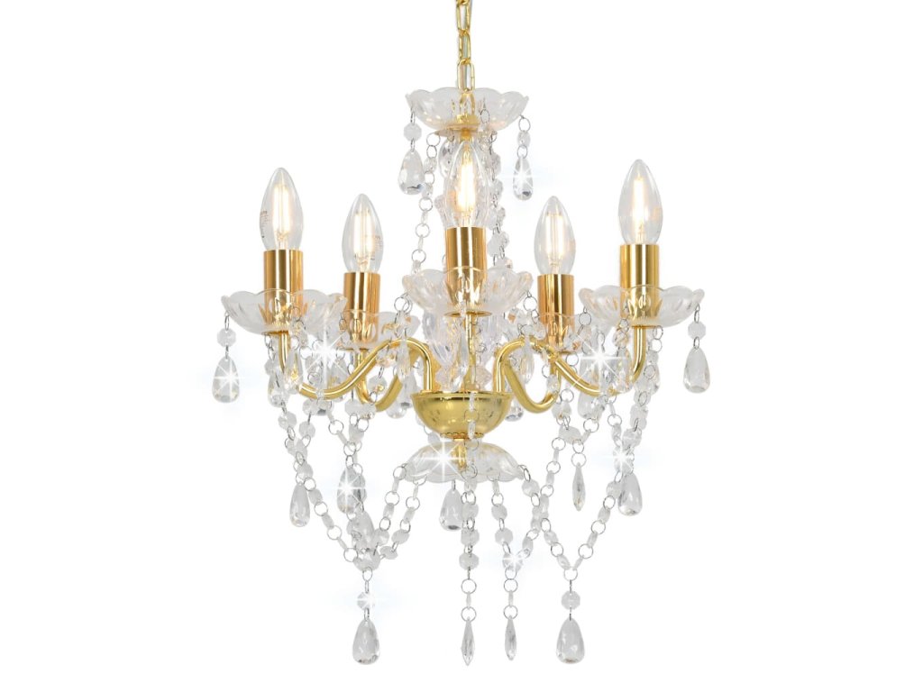 Lustr s křišťálovými korálky zlatý kulatý 5 x E14 281602