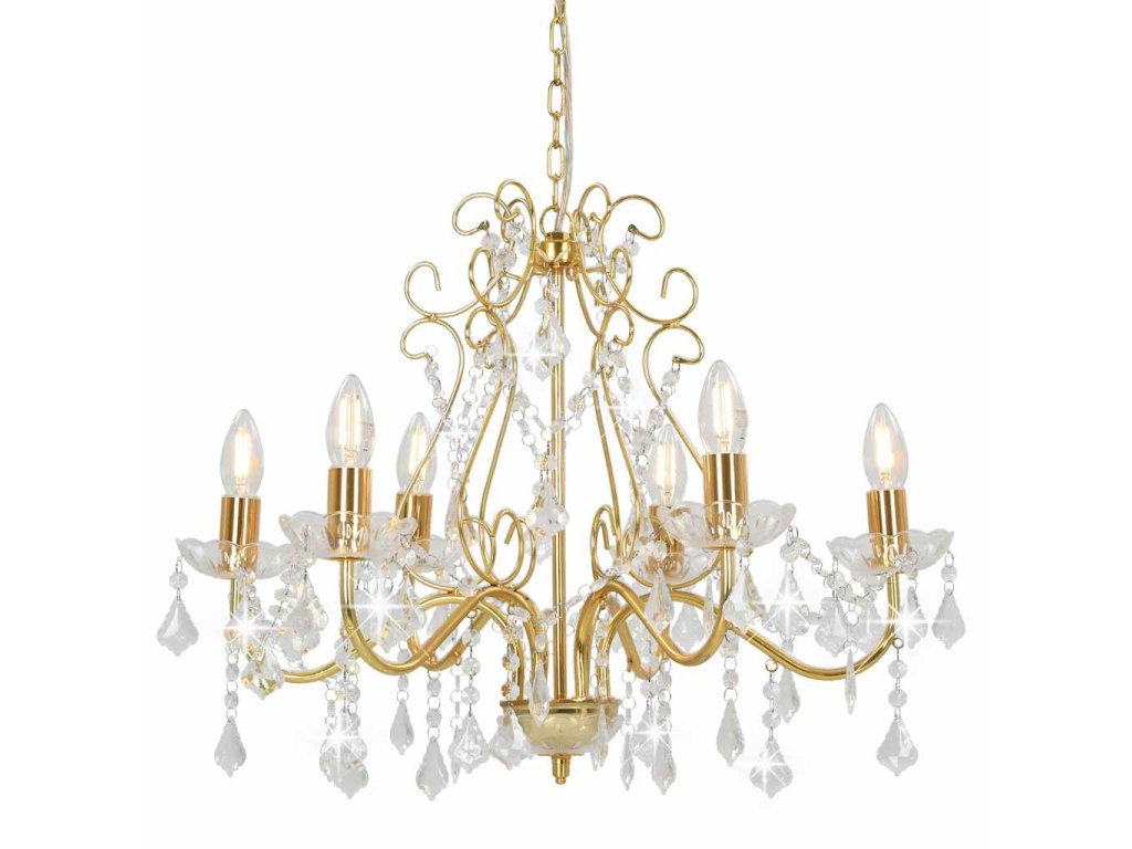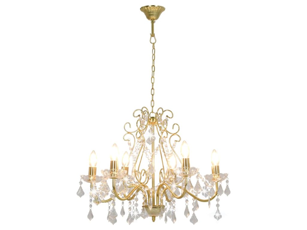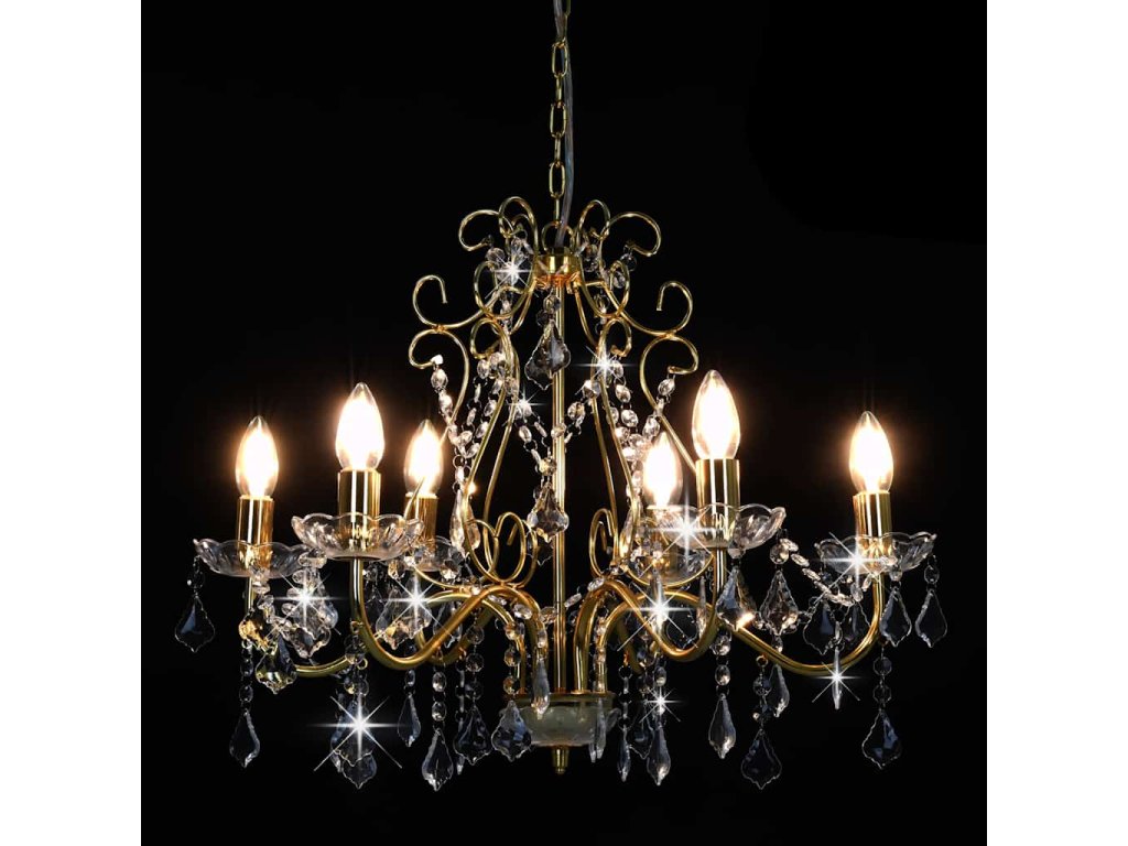 Lustr s křišťálovými korálky zlatý kulatý 6 x E14 281603