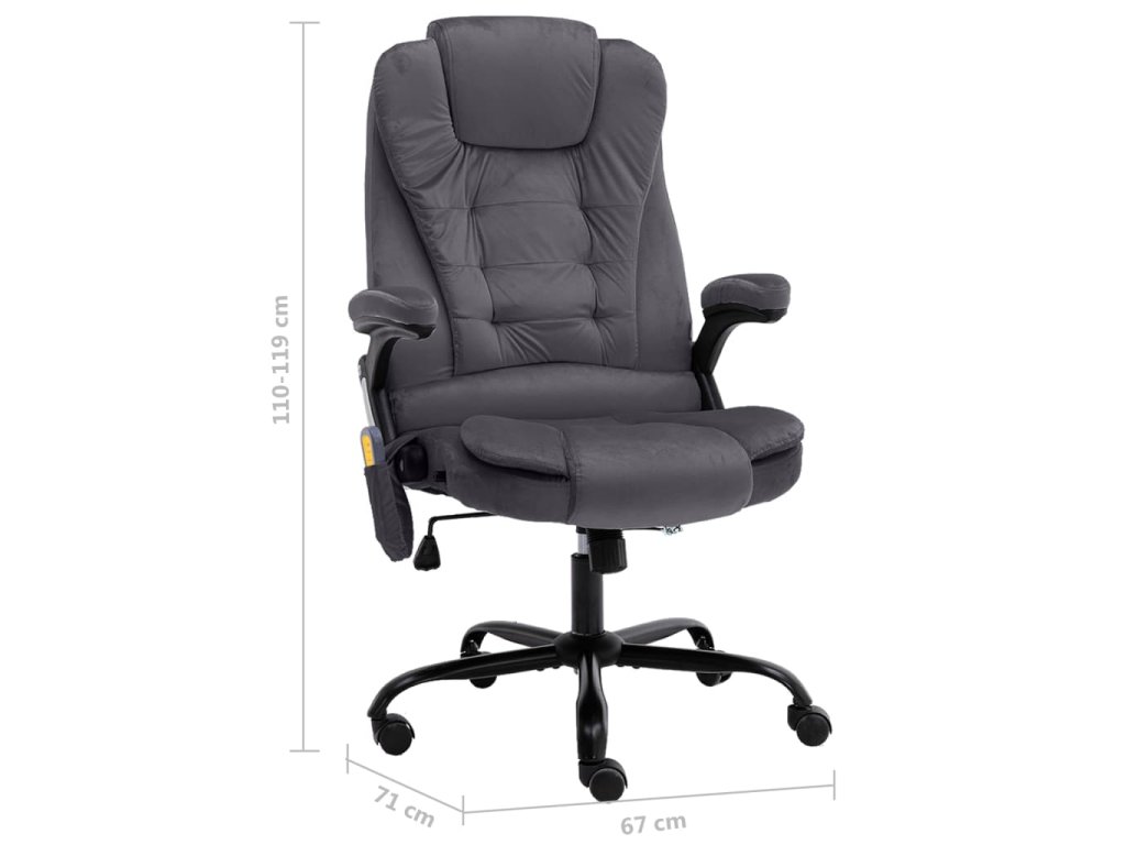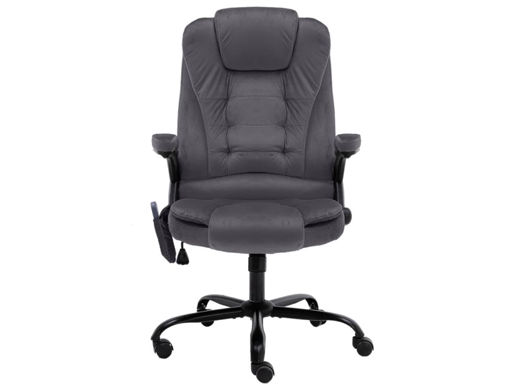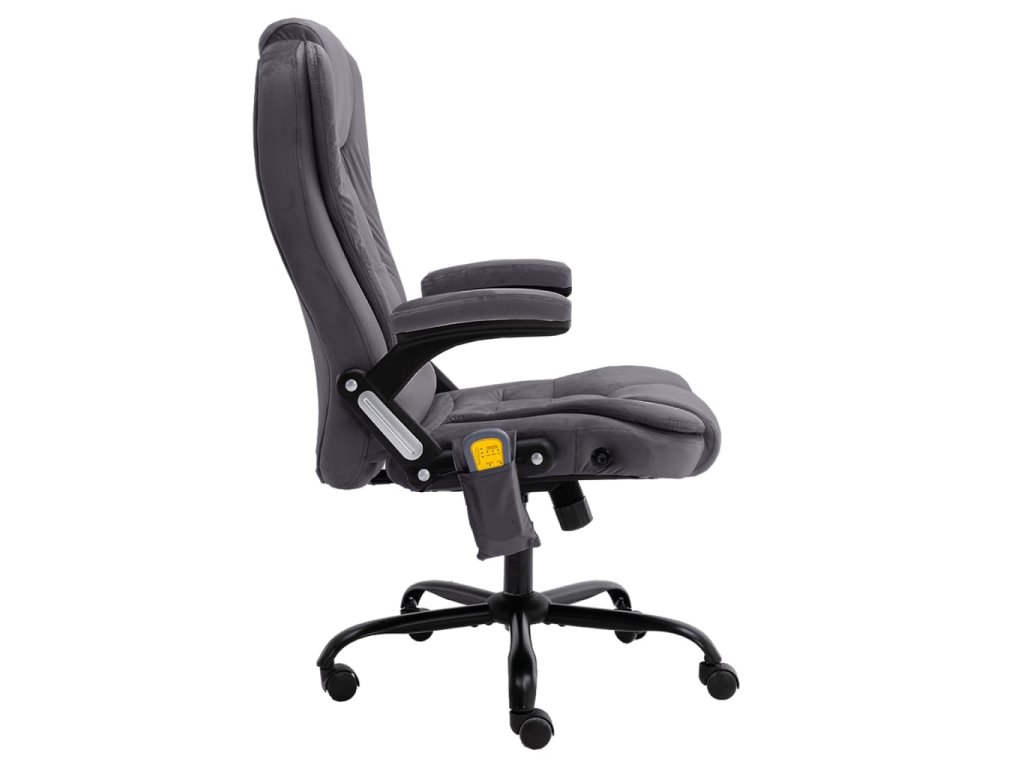 Židle má vysoké opěradlo, zaoblené područky a hustě polstrovaný sedák, aby se vám na ní dobře sedělo i během dlouhých pracovních dnů. Její výšku lze nastavit, takže ji bez problémů přizpůsobíte výšce psacího stolu, a dosáhnete tak maximálního pohodlí i zdravé pozice páteře. Polohovací křeslo je vybavené nylonovými pojezdovými kolečky pro snadný pohyb. Židle k počítači má 4 masážní body na záda a 2 masážní body na hýždě. Disponuje také funkcí vyhřívání pasu.