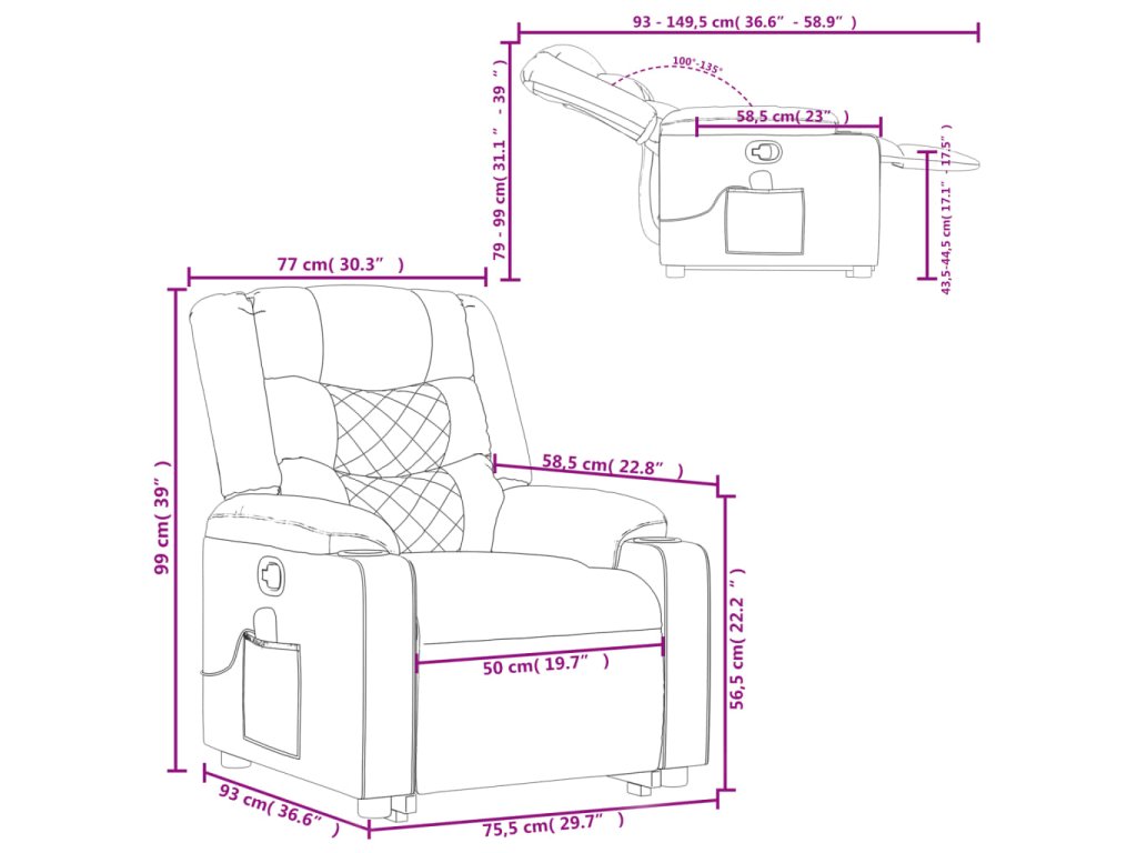 - Manuální polohovací funkce: Toto polohovací křeslo má madlo na pravé straně. Opěrku nohou a opěradlo můžete ručně nastavit do libovolné polohy podle vašich potřeb jednoduchým zatažením za madlo. Tato funkce umožňuje maximální náklon 135 stupňů. Opěradlo se navíc snadno vrátí do původní polohy zatažením za madlo.