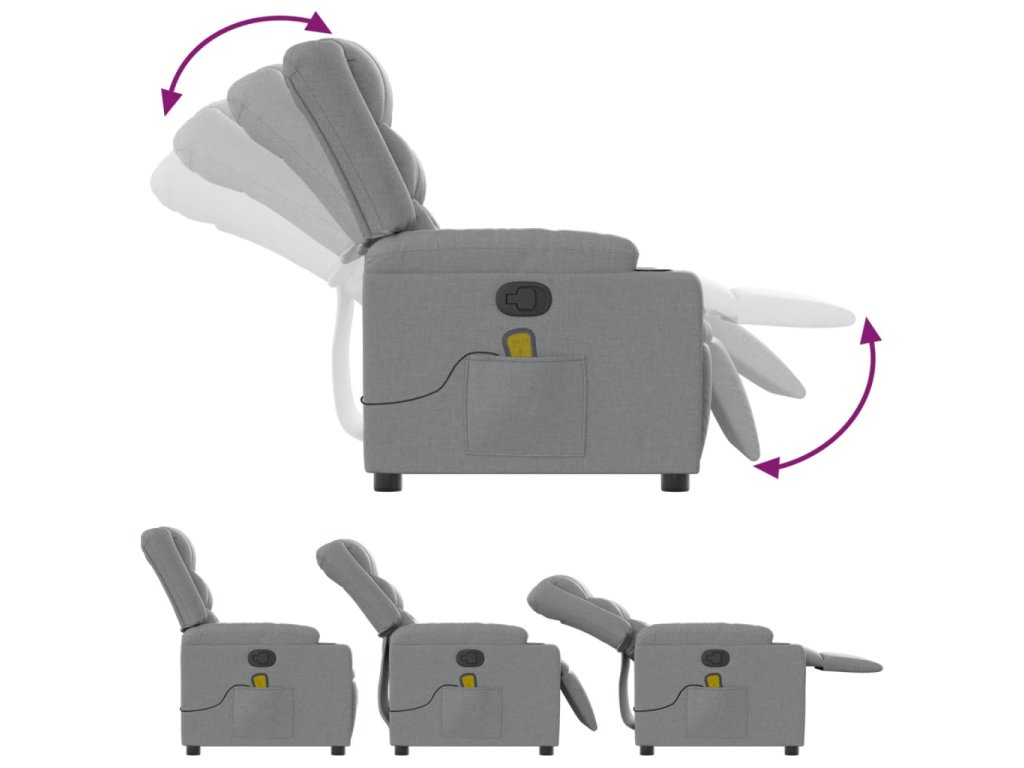 Masážní křeslo s polohovacím mechanismem, světle šedé, látkové 3206891