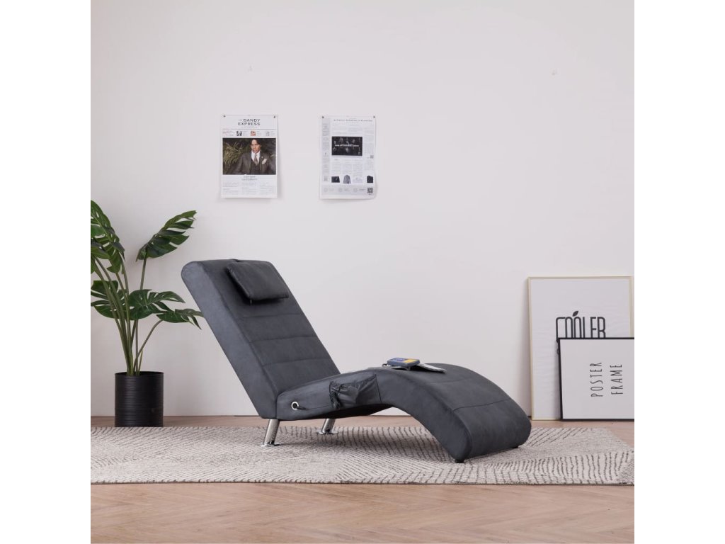 Masážní lenoška s polštářem šedá umělá broušená kůže 281290