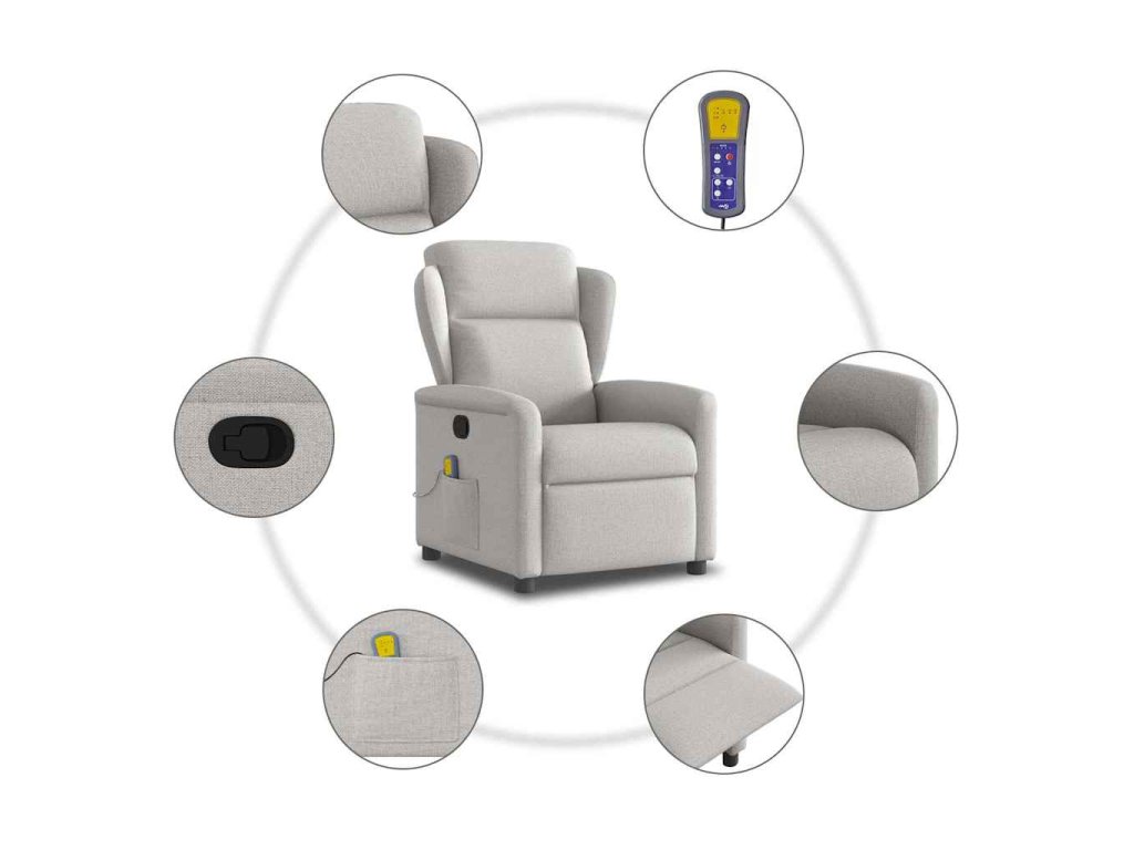 Masážní polohovací křeslo obláčkově šedá textil 4015595