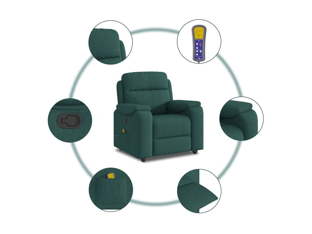 Masážní polohovací křeslo tmavě zelené textil 4015696