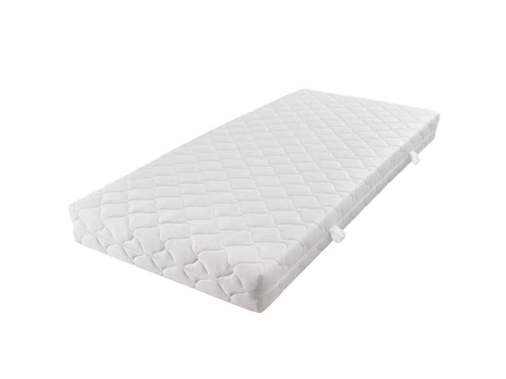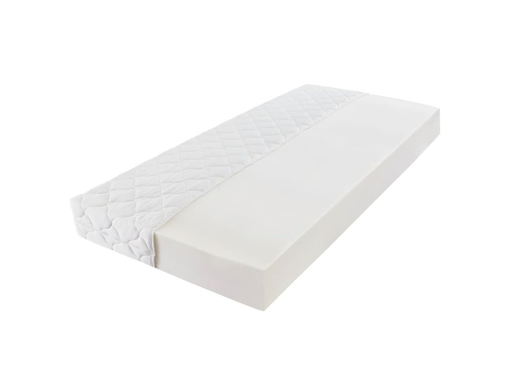 Poznámka: Matrace má tyto 3 vrstvy, odshora dolů: 1 cm silný polstrovaný potah, který lze prát, 15 cm silná D30 pěna, 1 cm silný pratelný polstrovaný potah.