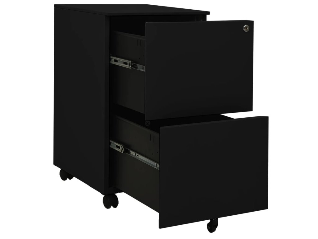 Tato kartotéka je vyrobena z oceli, takže je odolná a snadno se čistí. Disponuje 2 zásuvkami a zámky, takže můžete přehledně třídit soubory do různých kategorií a mít je bezpečně uložené. Každá zásuvka je vybavena 1 odnímatelnou závěsnou tyčí, kterou lze libovolně kombinovat pro uložení souborů formátů letter, legal a závěsné desky velikosti A4. Zásuvky s třídílnými pojezdy s kuličkovými ložisky zajišťují plynulé otevírání a zavírání, i při zvýšené zátěži se zásuvky dají zcela vysunout.