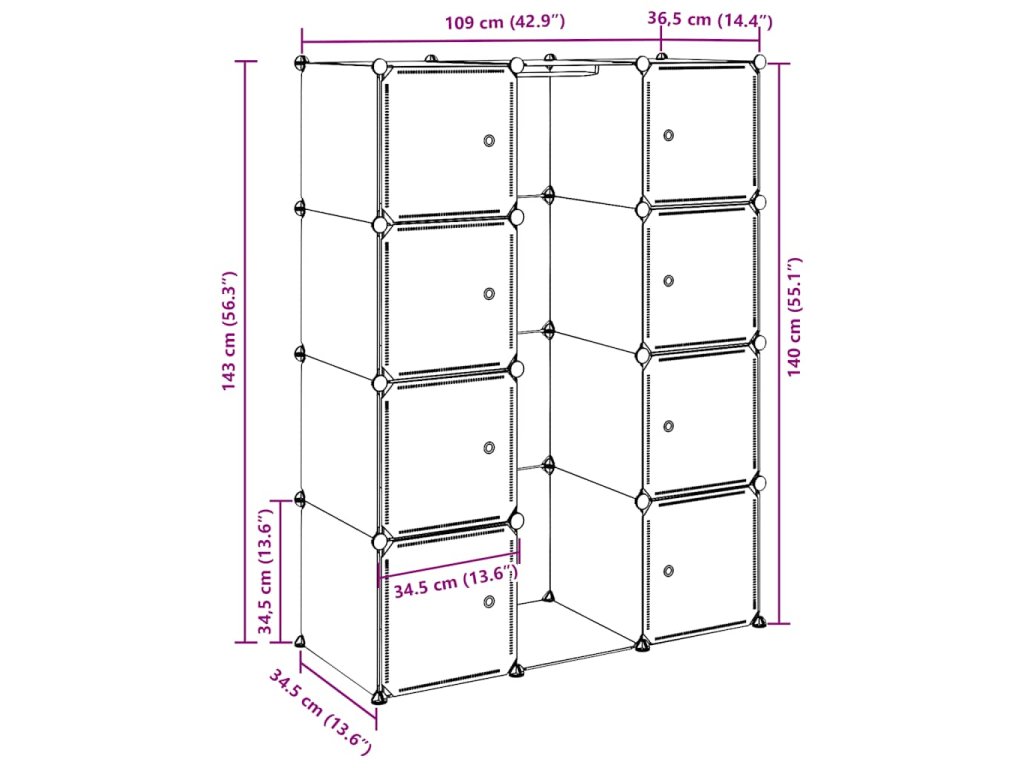 Tato praktická modulární skříň nejenže je velmi stylová, ale také vám umožní udržovat ve vašem oblečení a obuvi pořádek. Bude skvělým doplňkem do vašeho dětského pokojíčku, obývacího pokoje nebo ložnice.