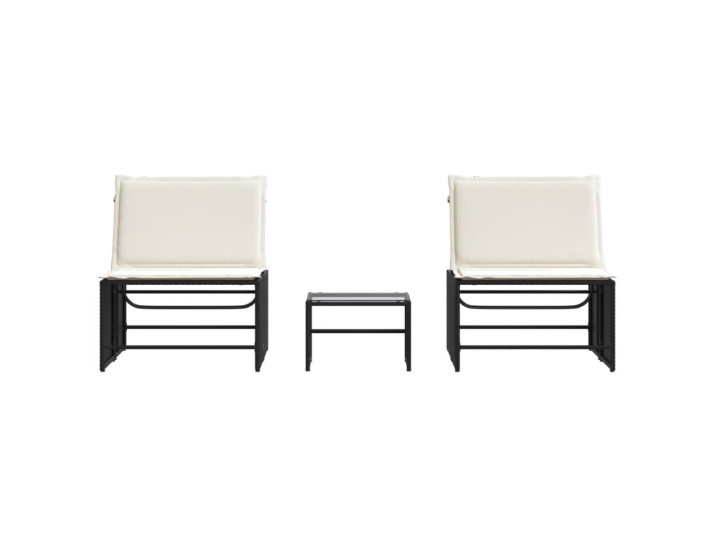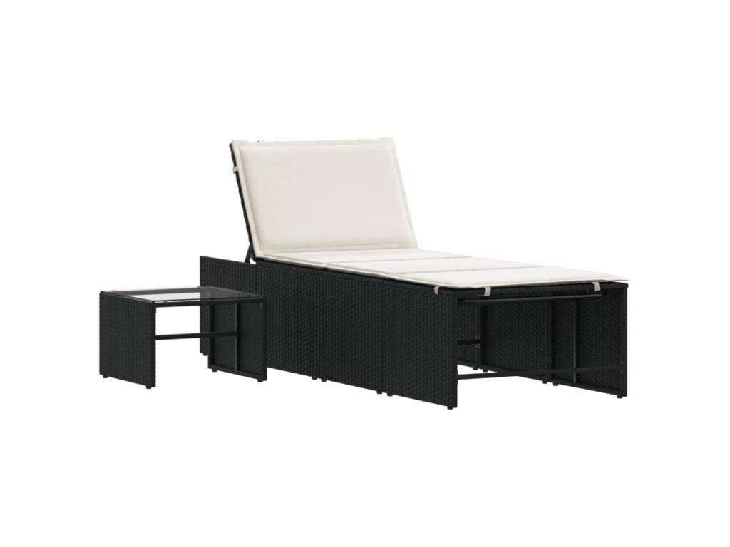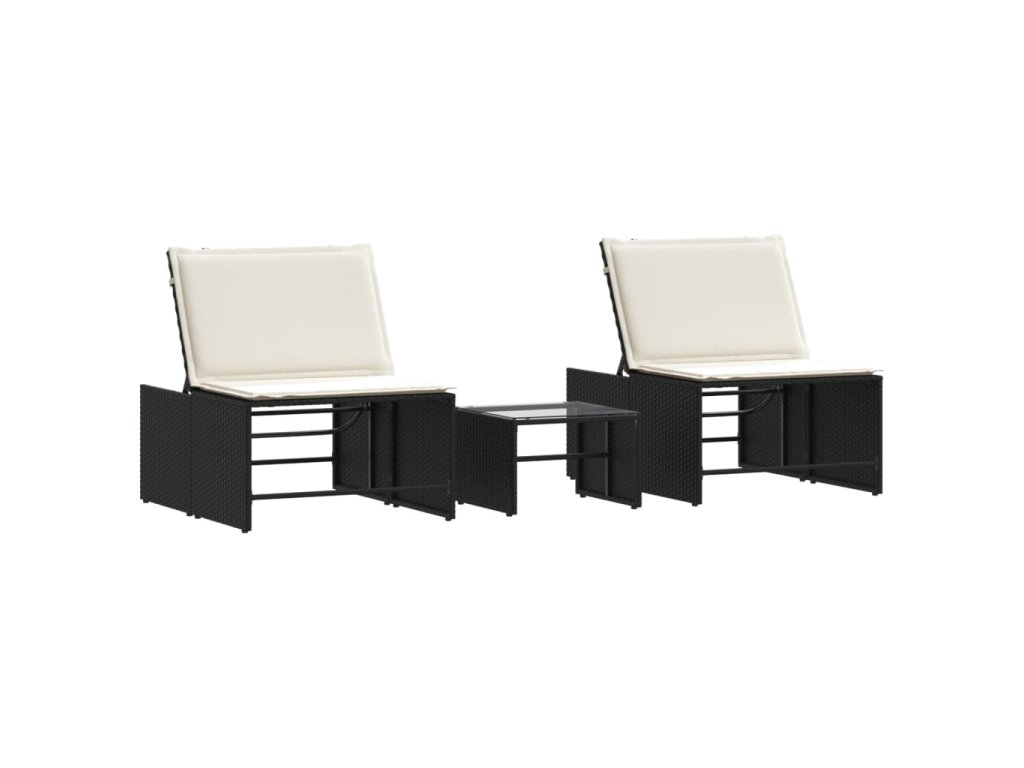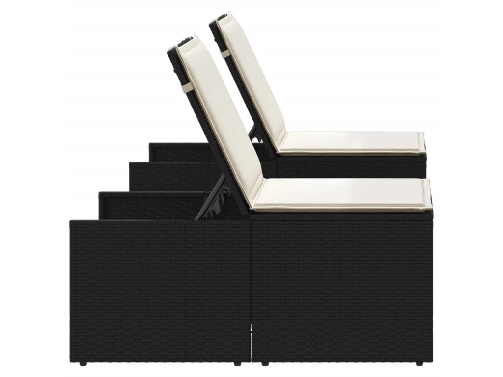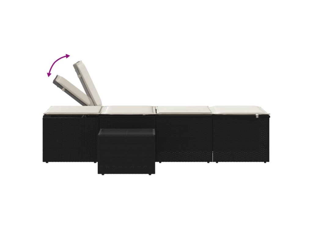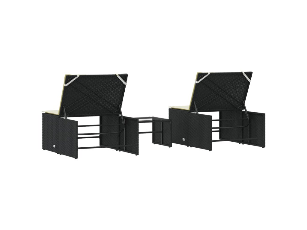 Modulární zahradní lehátka 2 ks se stolkem černá polyratan 368422
