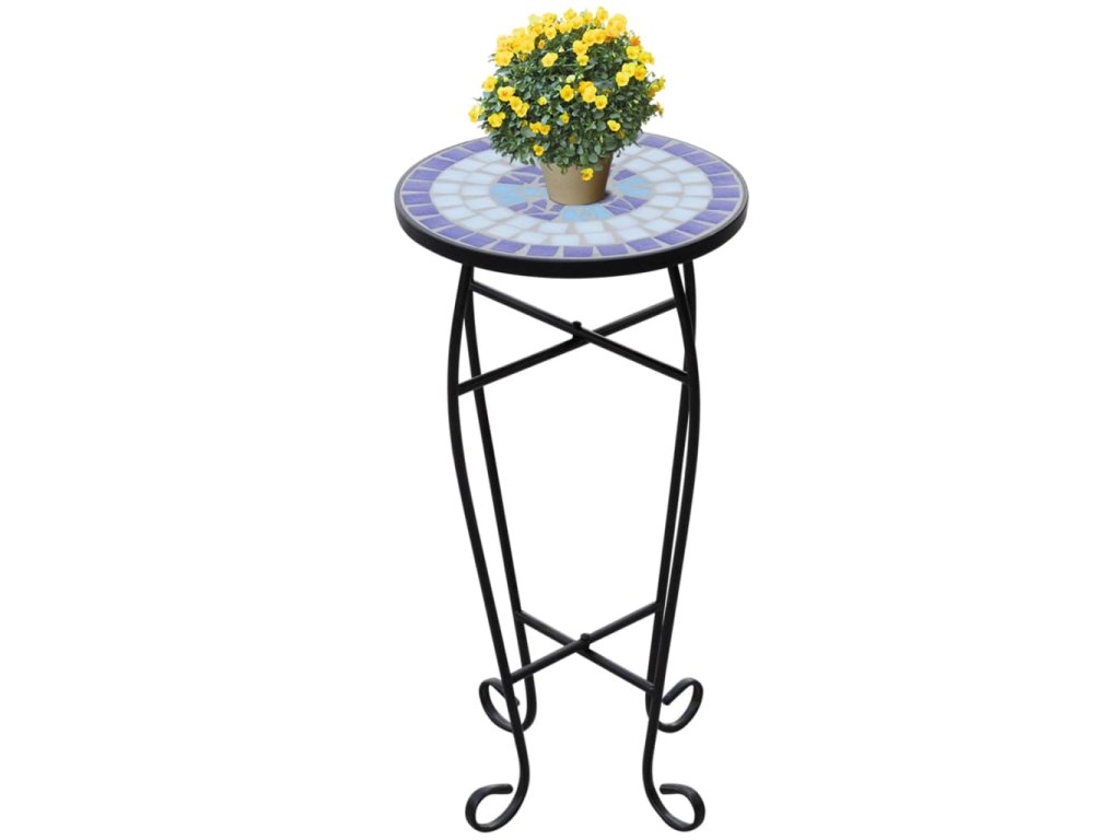 Tento květinový stolek má elegantní zakřivené nohy a mozaikovou desku, která je odolná vůči povětrnostním vlivům. Zajisté se stane středem pozornosti vaší zahrady, balkonu, terasy atd.