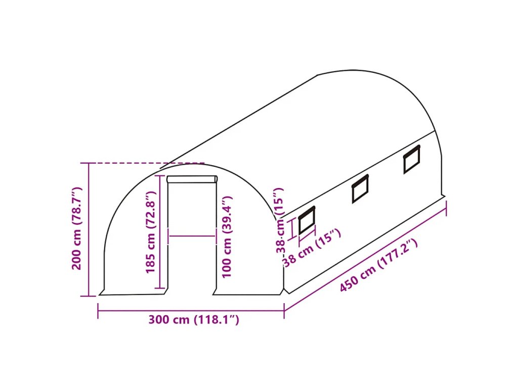 Plachta je vyrobená z PE, který je těžší než standardní síťovina. Tato skleníková plachta disponuje šesti okny pro větrání a také dveřmi.