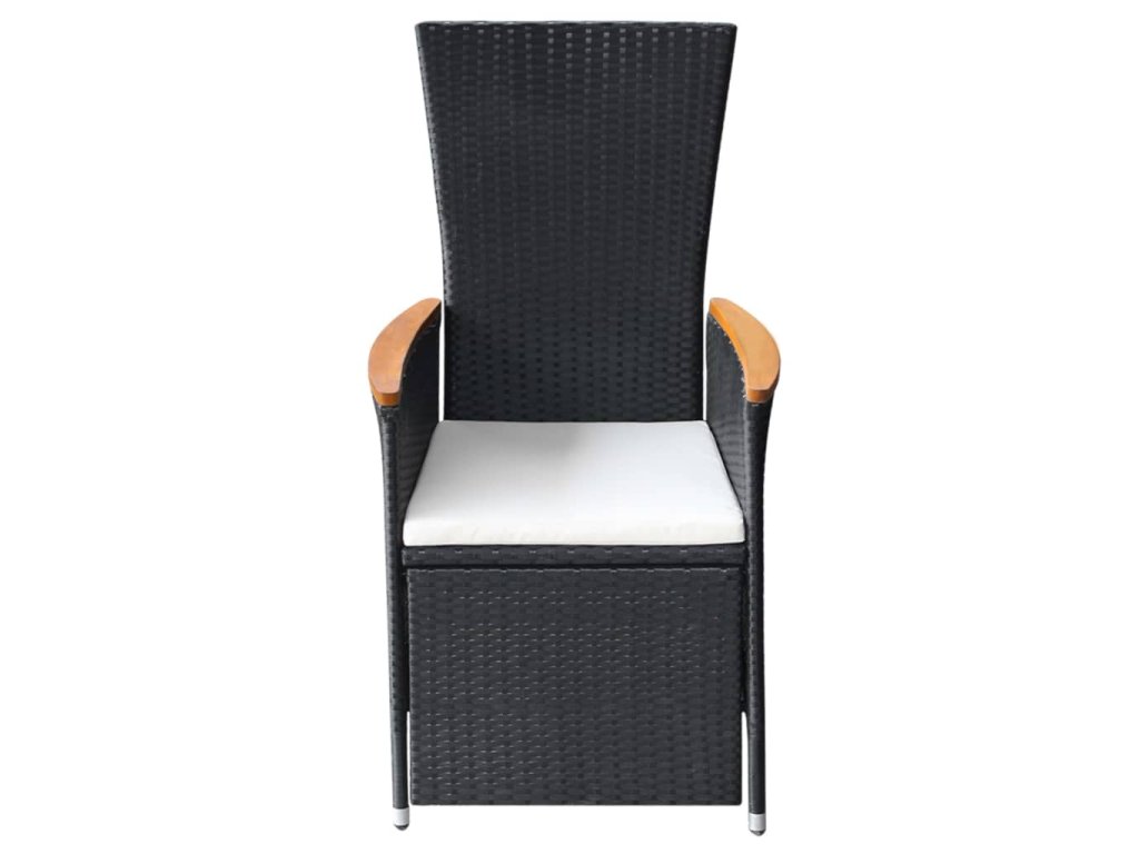 Tyto židle, vyrobené z PE ratanu, odolného vůči povětrnostním vlivům a vodě, jsou snadno udržovatelné, odolné a vhodné pro každodenní použití. Ocelové rámy s povrchovou úpravou činí židle velmi robustními a odolnými. Područky jsou vyrobeny z akáciového dřeva, tropického tvrdého dřeva, které je velmi dobře odolné vůči povětrnostním vlivům. Stisknutím tlačítka na boku se opěradlo sklopí a vysune se opěrka nohou. Díky lehké konstrukci se židle snadno přenášejí. Tlusté, avšak měkké pěnové polštáře jsou velmi pohodlné a jsou vyrobeny z vodu odpuzujícího polyesteru. Povlaky polstrů jsou opatřeny zipy, takže je lze snadno sejmout a vyprat.