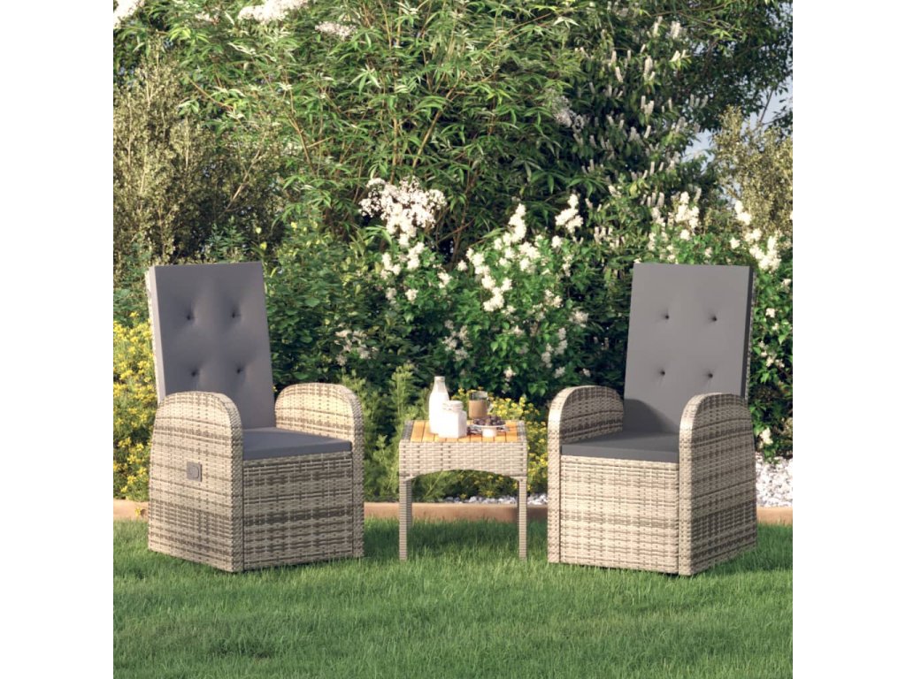 Nastavitelné zahradní židle 2 ks s poduškami polyratan šedé 47676