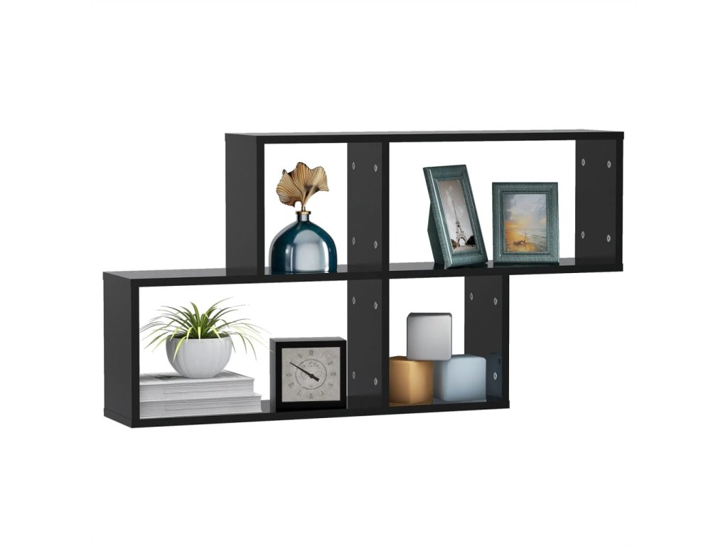 Nástěnná police černá 100 x 18 x 53 cm kompozitní dřevo 807161