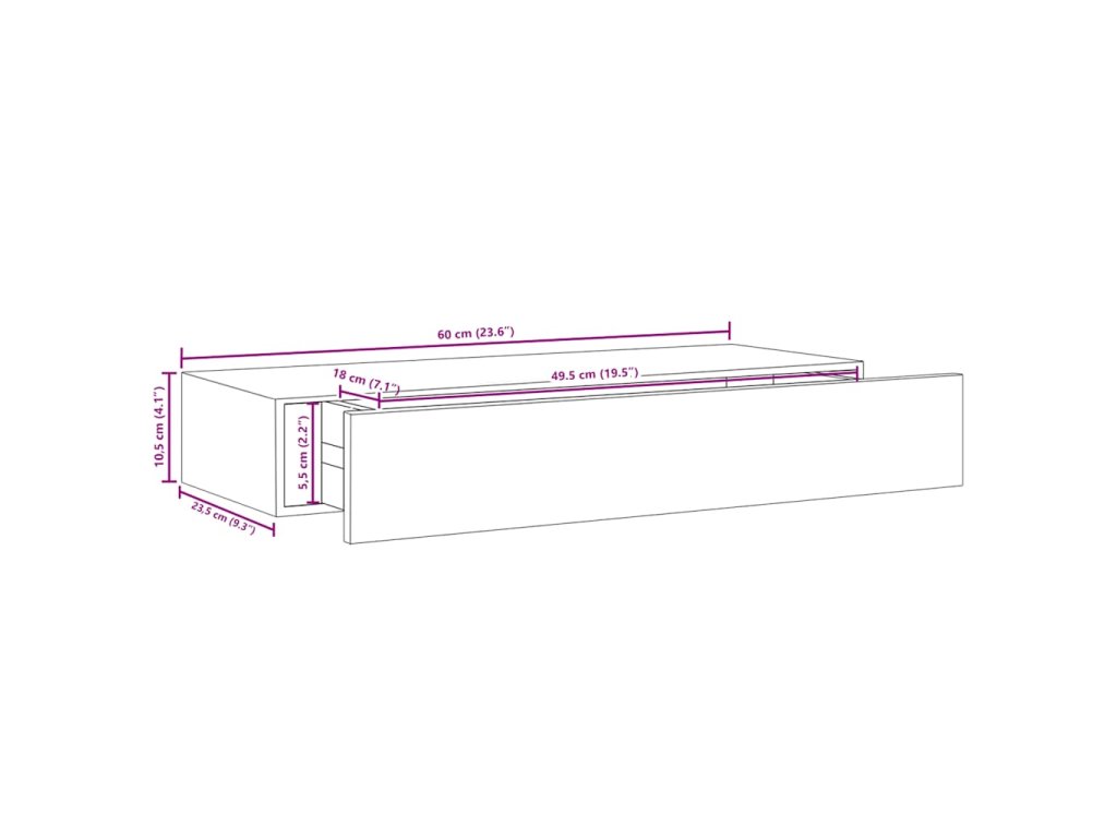 - Rozměry zásuvky: 49,5 x 18 x 5,5 cm (Š x H x V)
