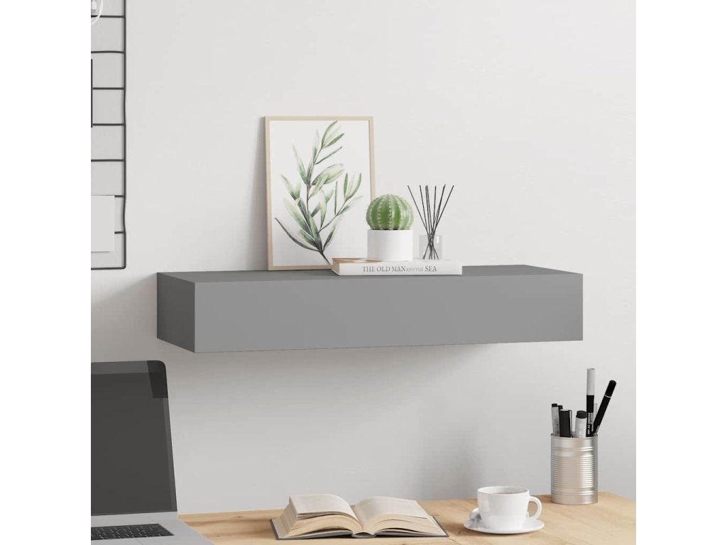 Nástěnná police se zásuvkou šedá 60 x 23,5 x 10 cm MDF 330259
