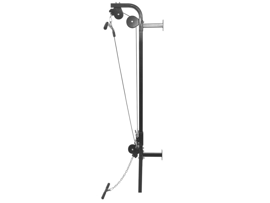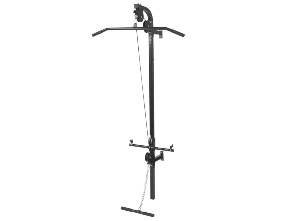 Tato nástěnná posilovací věž se dvěma kladkami je vybavena hrazdou na přitahování shora a nízkou hrazdou na shyby. Díky tomu si procvičíte všechny hlavní svaly vašeho těla.