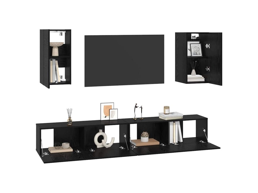Nástěnná skříň na TV Nástěnný 3 pcs Černý dub kompozitní dřevo 3393346