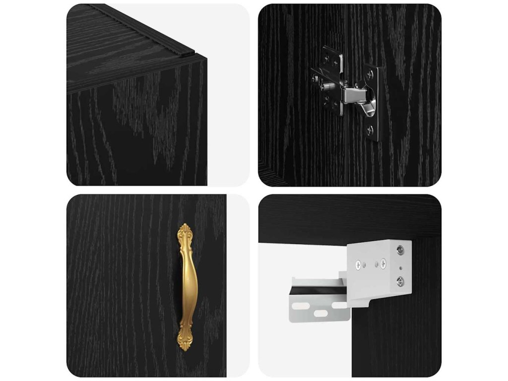 - Materiály: Tohle všechno je vyrobeno z odolného kompozitního dřeva, které vypadá skvěle a zajišťuje dlouhou životnost. Materiál dodává skříni elegantní vzhled, který se skvěle hodí do moderních interiérů. Rám odolný prohnutí zajišťuje pevnou a stabilní konstrukci, ideální pro dynamické obytné prostory.