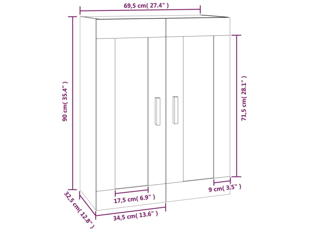 Nástěnná skříňka hnědý dub 69,5 x 32,5 x 90 cm kompozitní dřevo 817395
