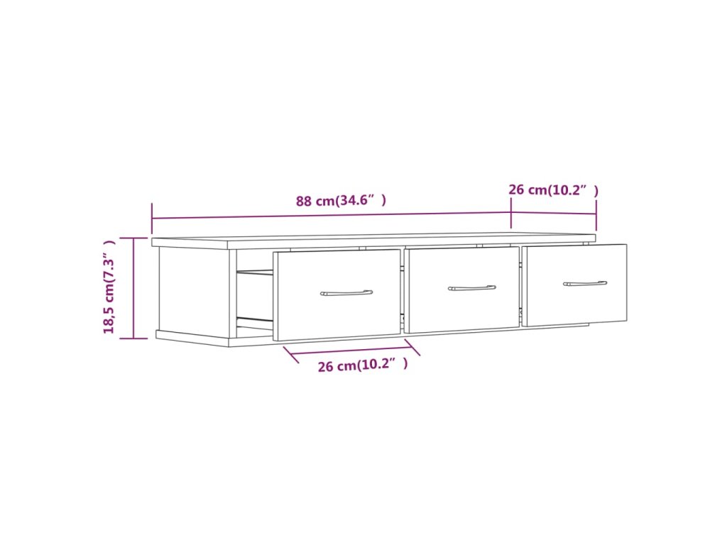 - Rozměry: 88 x 26 x 18,5 cm (Š x H x V)