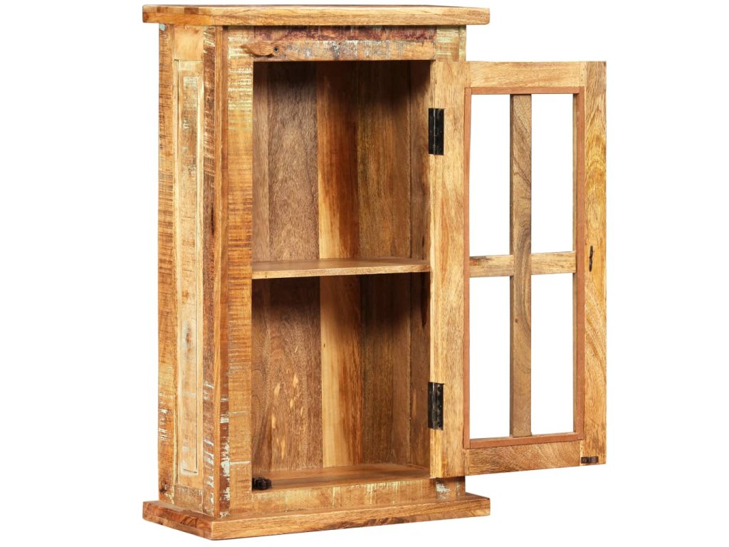 Naše závěsná skříňka z recyklovaného dřeva s velkou přihrádkou se výborně hodí do kuchyně nebo koupelny.