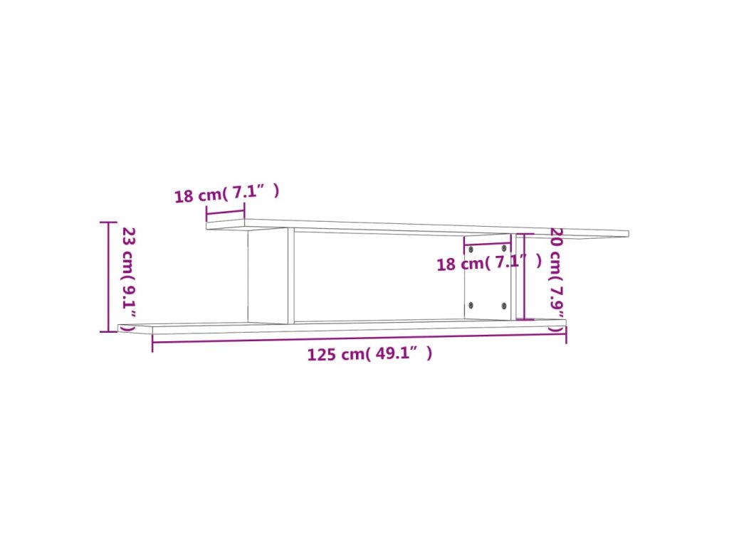 Nástěnná TV police betonově šedá 125 x 18 x 23 cm dřevotříska 806993