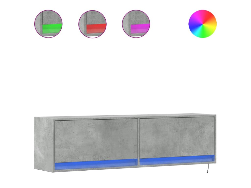 Nástěnná TV skříňka s LED osvětlením betonově šedá 140x31x38 cm 852372
