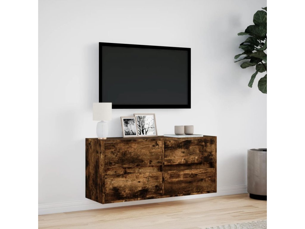 Nástěnná TV skříňka s LED osvětlením kouřový dub 100x31x45 cm 852296