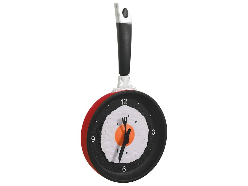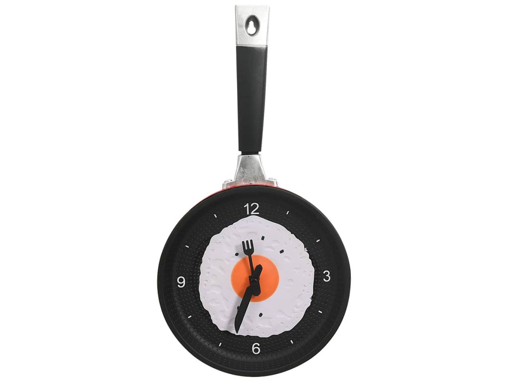 Nenechte si ujít tyto nové vtipné nástěnné hodiny, designované jako volské oko, které se smaží na pánvičce.
