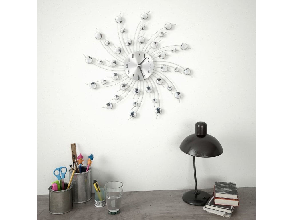 Hodiny mají pevný hliníkový rám a jsou vysoce odolné. Pyšní se překrásným paprskovým designem posetým blýskavými korálky, jež hodinám propůjčují elegantní vzhled. Díky dobře čitelným číslicím je bez obtíží přečtete i z větší dálky. Dají se navíc snadno zavěsit na stěnu. Hodiny dodají vašemu interiéru úhledný a čistý vzhled.