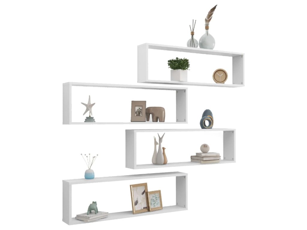 Nástěnné obdélníkové police 4 ks bílé 100 x 15 x 30 cm kompozit 807080