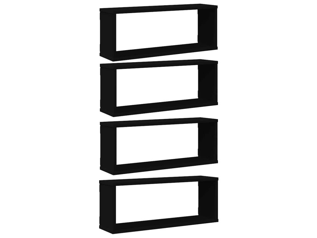 Nástěnné obdélníkové police 4 ks černé 60 x 15 x 23 cm kompozit 807137