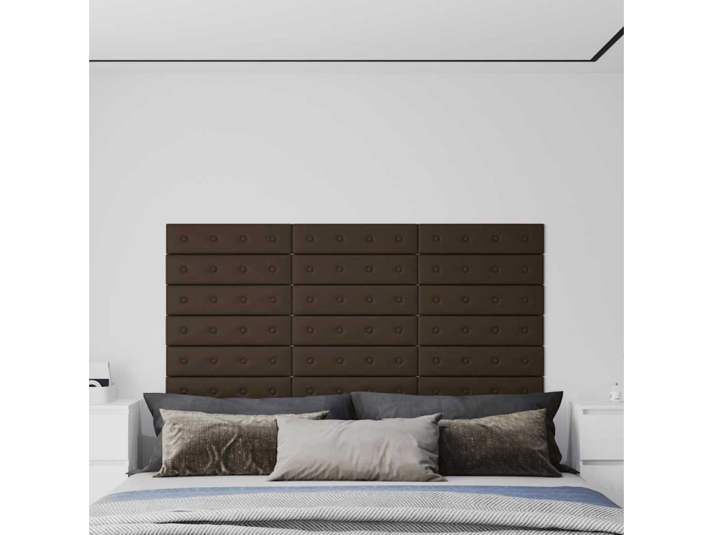 Nástěnné panely 12 ks hnědé 60 x 15 cm umělá kůže 1,08 m² 343987