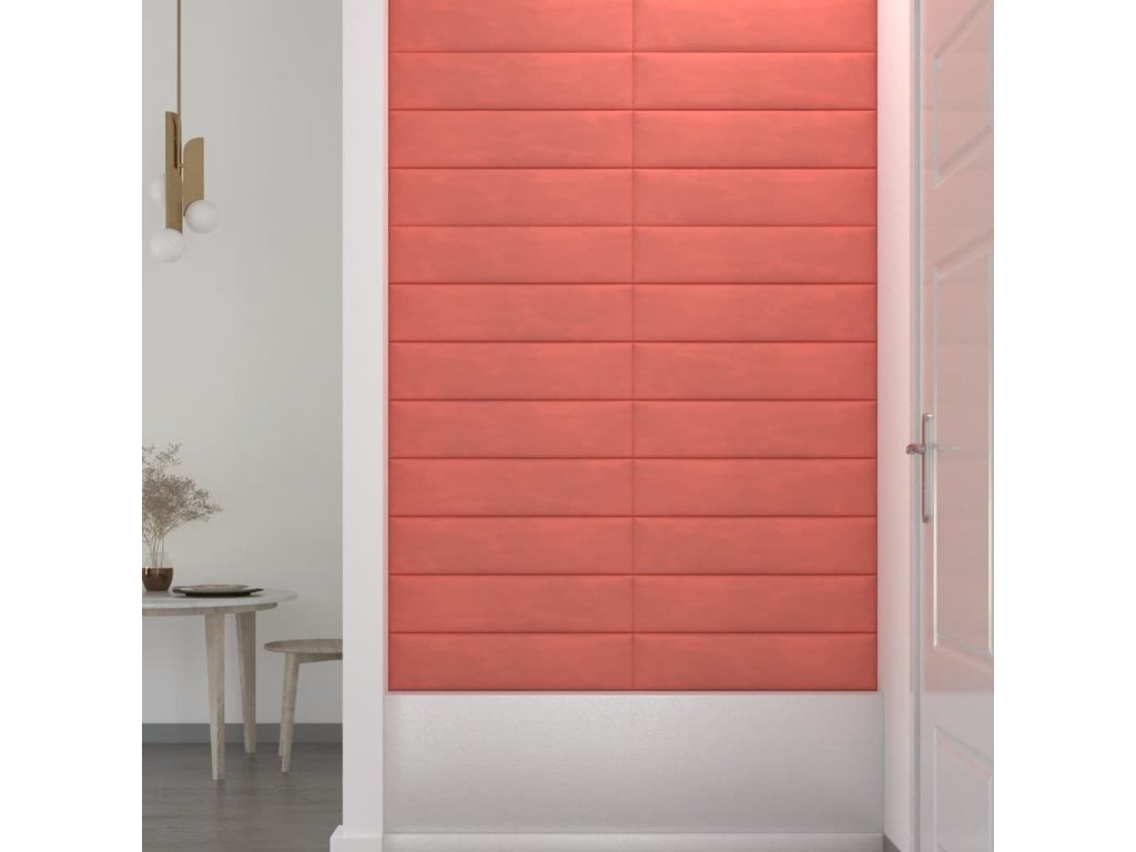 Nástěnné panely 12 ks růžové 60 x 15 cm samet 1,08 m² 343838
