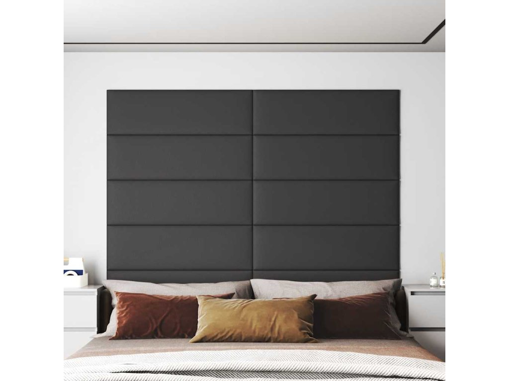 Nástěnné panely 12 ks šedé 90 x 30 cm umělá kůže 3,24 m² 343914
