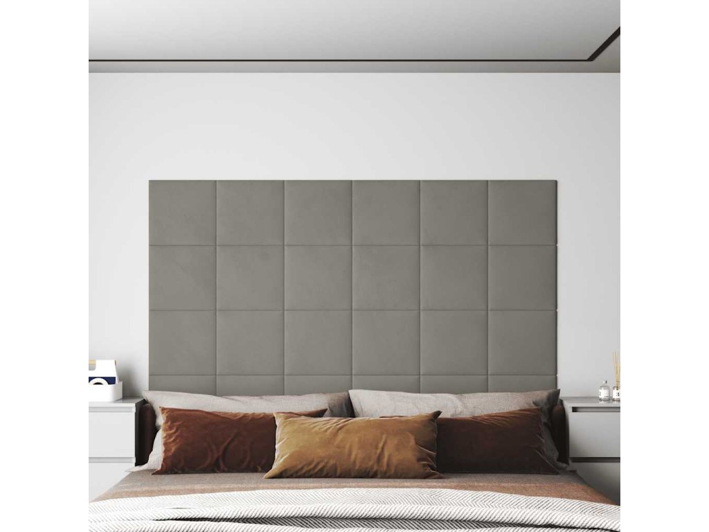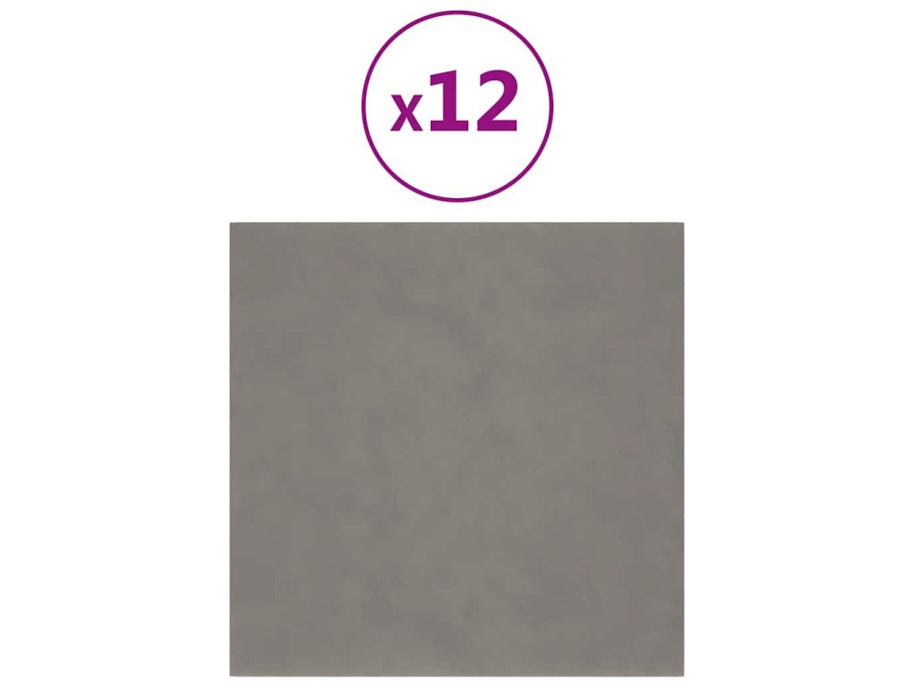 Nástěnné panely 12 ks světle šedé 30 x 30 cm samet 1,08 m² 343807